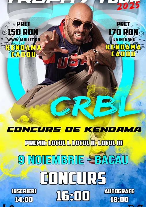 CRBL, promotorul kendamei în România, va fi prezent pe scenă în fiecare oraș – va juriza concursul, va semna kendamele tuturor participanților și va face poze cu fanii.