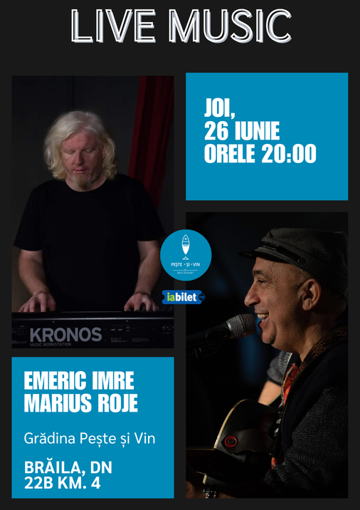 Emeric Imre, unul dintre cei mai apreciați artiști ai folkului românesc, cunoscut pentru piese precum Nebun de alb, Noapte de unul singur sau Bună varianta rea, revine la Brăila pentru un concert special, într-o atmosferă caldă, prietenoasă și plină de emoție. Alături de el, pe scenă va fi Marius Roje, într-un duo care promite o seară de poveste.