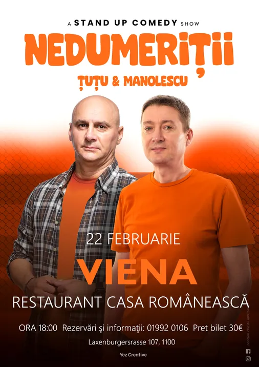 Viena, adună-ţi gaşca şi vino duminică, 22 februarie, la Restaurantul Casa Românească, să îi vezi pe Cristi – ce mi-ai pus pe tăviţă, mamă – Manolescu şi Dan Ţuţu, un povestitor desăvârşit care te va cuceri cu naturaleţea sa.
